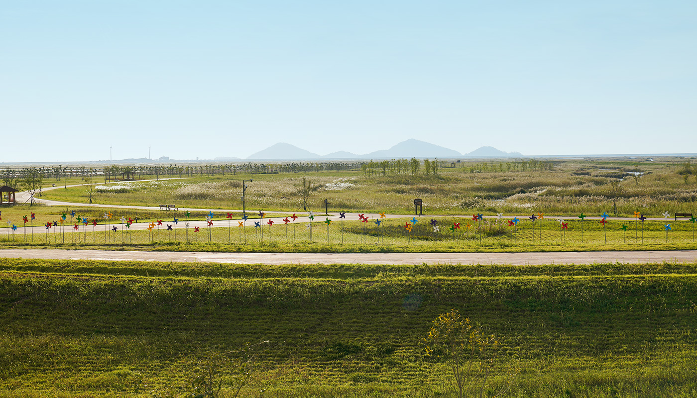 생태단지 내에서 바람이 가장 많이 부는 곳으로 길 양쪽에 형형색색의 바람개비가 배치되어있는 장소입니다. 바람개비와 함께 포토존도 설치되어 있어 인증샷을 남기며 소중한 추억을 남길 수 있는 공간입니다. 이곳은 시원한 바람을 맞으며 산책을 할 수 있도록 생태단지 내에서 가장 넓은 탐방로가 조성되어 있는 곳입니다.