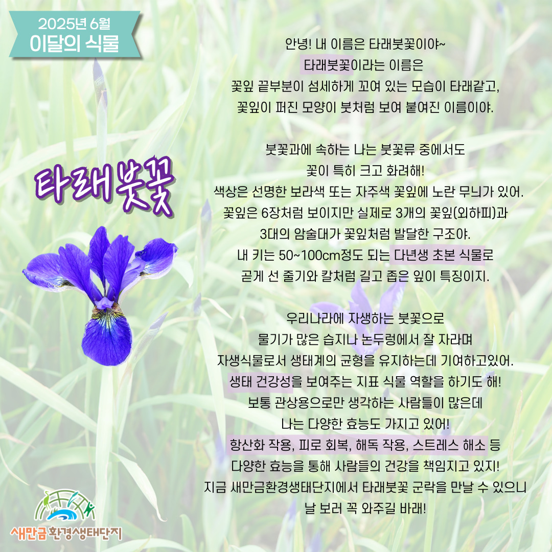 지금 새만금환경생태단지에서 타래붓꽃을 만나볼 수 있습니다.^^